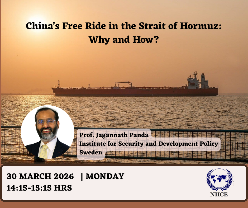 Search Recent Posts India’s Westward Turn: Expanding Economic and Strategic Engagement with West Asia March 22, 2026 Sri Lanka’s Strategic Neutrality: Denying U.S. Request for Combat Aircraft Landing March 21, 2026 Is Bhutan’s Gelephu a Return of Another Siliguri, almost a Century Later? March 20, 2026 Future-Proofing Ozone Diplomacy: The Critical Role of Emerging Technologies and Cybersecurity March 19, 2026 The Semiconductor “Pax Silica”: Evolving Dynamics in U.S.-South Korea Tech Relations March 18, 2026 Recent Comments Date 30 Mar 2026 Time 3:15 pm - 4:15 pm China’s Free Ride in the Strait of Hormuz: Why and How? Registration Link Share this event + Add to Google Calendar + iCal / Outlook export